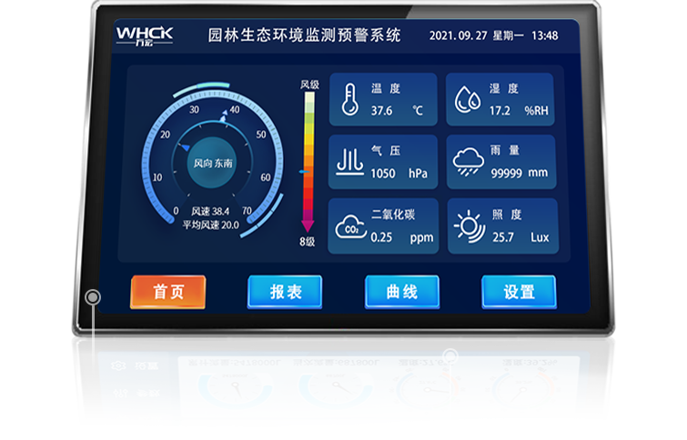 通过多维一体化的监测,实现对现场温、湿、光、二氧化碳、臭氧、负氧离子、一氧化碳以及粉尘颗粒(PM2.5、PM10)等各类景区环境数据的实时监测。