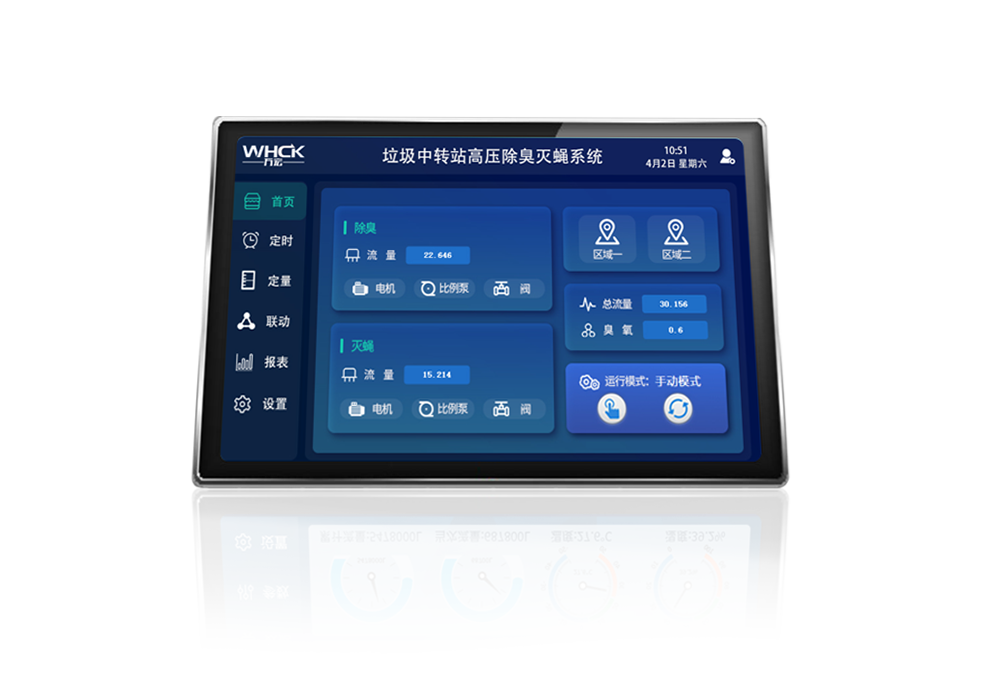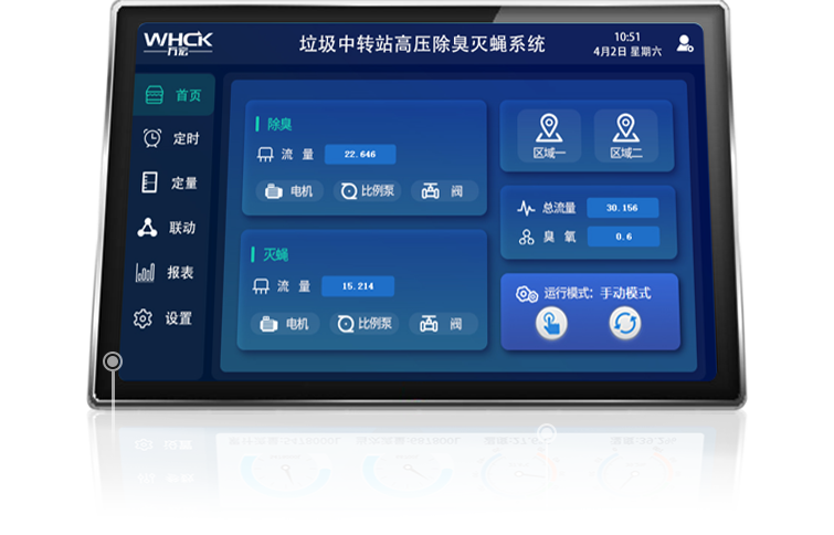 银河测控垃圾中转站高压除臭灭蝇系统,将除臭和灭蝇结合可同时对两个不同区域进行除臭或者灭蝇工作可以设定定时运行、定量运行与臭氧联动。