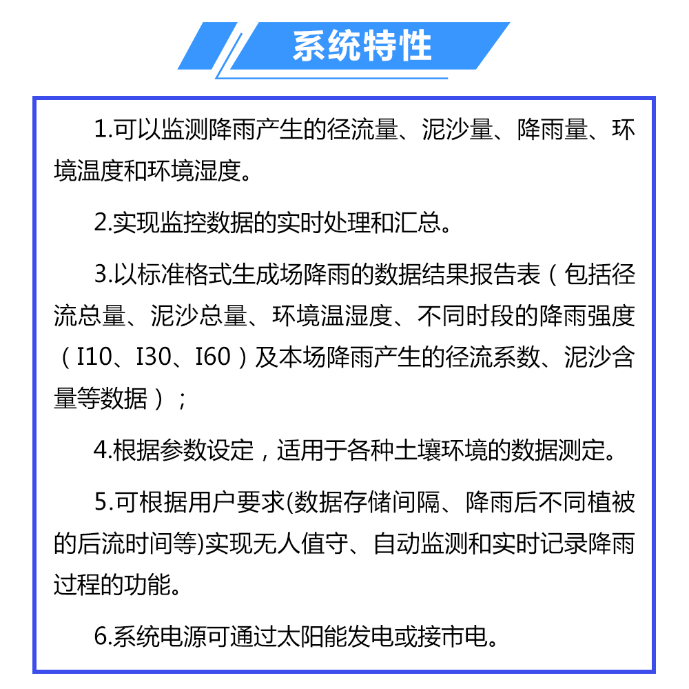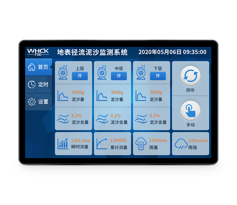 为了满足教育研究机构和科学研究机构对实时降雨的需求,银河测控自主研发了地表径流泥沙监测系统,该系统用于径流站,为各种实验提供监测条件。相应配套触摸屏软件可以实时显示当前瞬时流速和瞬时流量,并且通过触摸屏配套软件可以实时控制整个监测的过程,可以通过查询方式查询历史数据,并能导出数据到Excel格式文件等功能。