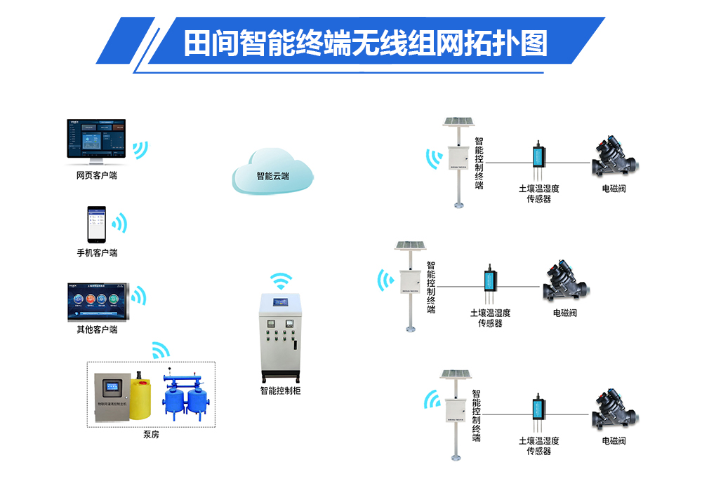 WH-WCK6型物联网智能灌溉终端终端利用物联网、LoRa无线组网、自动化技术,适合大面积灌溉、多点控制阀布局、不方便供电、不方便主控通讯的应用场景。产品通过土壤、气象、作物等类传感器实时采集田间土壤墒情、管网压力、流量等监测数据无线发送到灌溉主控系统汇集的数值进行分析后由‘物联网智能灌溉终端’执行命令动作,以此来实现灌溉自动化控制运行环境。